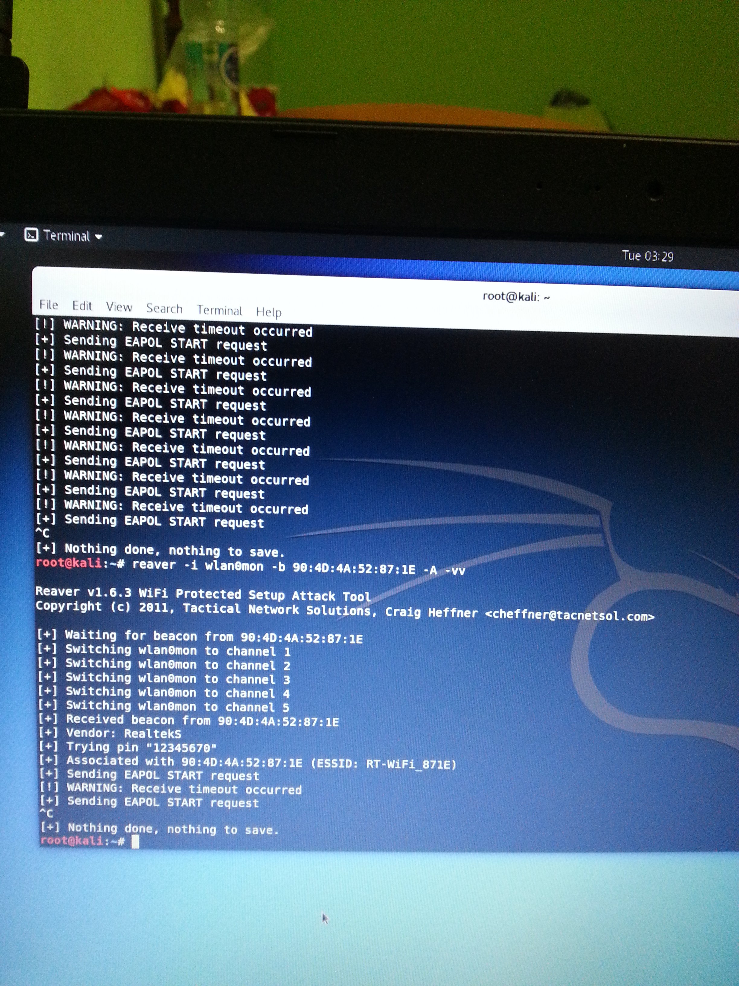 Всех приветствую. Никак не удается запустить reaver на подбор wps пина. Адаптер awus051nh v2, linux kali последняя версия установленная на флешку с разделом под сохранение данных. На точке доступа wps активен. Про проблему с reaver и данным адаптером в курсе, но как правильно запустить перебор не знаю