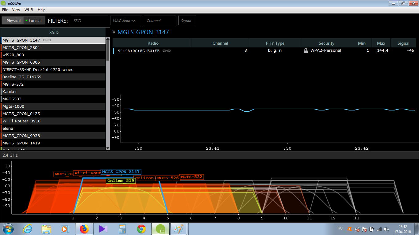 В остальном нет смысла рассматривать, т.к. если интересующие AP двухдиапазонные, то поломав сеть на 2,4ГГЦ вы получите доступ и к 5ГГц.