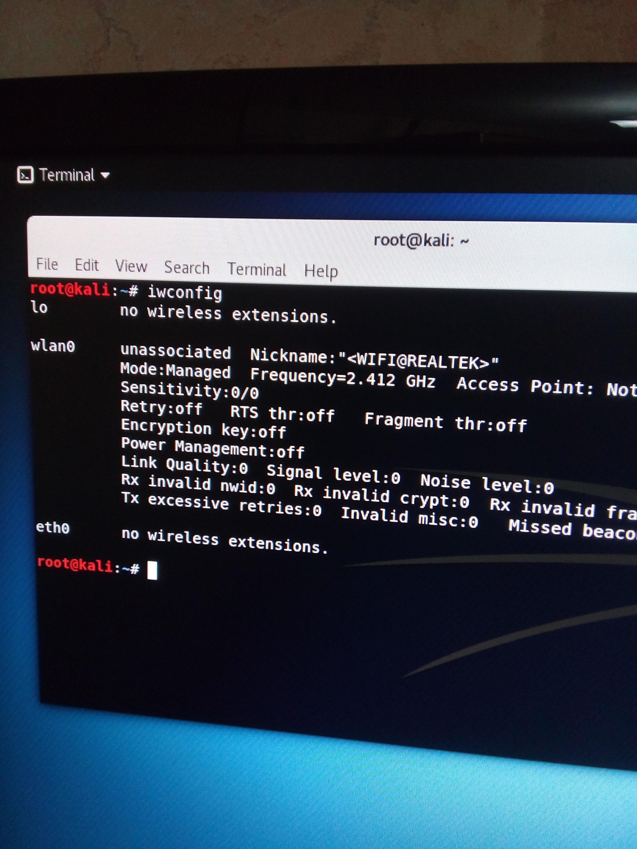 Всем привет, увы решил не дожидаться покупки alpha , тем более что в ДНСе все таки не дали денежный возврат,ну думаю ладно что ж, список адаптеров есть для вардрайвинга поищу)) нашёл tp-link tl-WN722N , купил, включаю с kali linux и он не видит его что?(( Стоит ver.3 как я понимаю,а разве она не подойдет? А вот что пишет сам терминал если ввести iwconfig