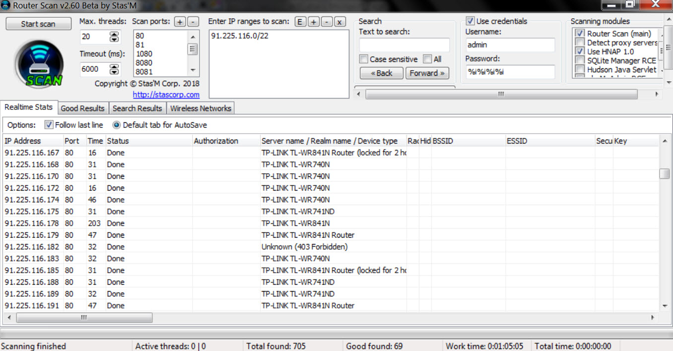 В диапазоне 91.225.116.0-91.225.119.255 их ну очень много, а Router Scan'у поддаются не более 10%.