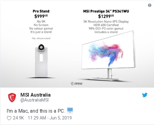 MSI затроллила подставку для монитора Apple за $1000