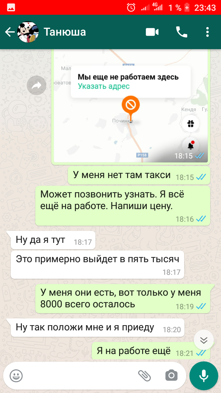 13.08.2020, 19:51 - Танюша: Не-а я прям рядом с домом работаю