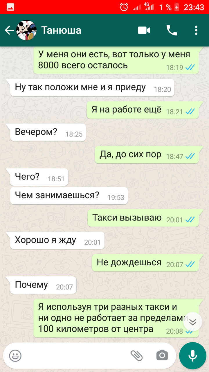 [16.08, 16:48] Танюша: Я тебе верну когда деньги будут