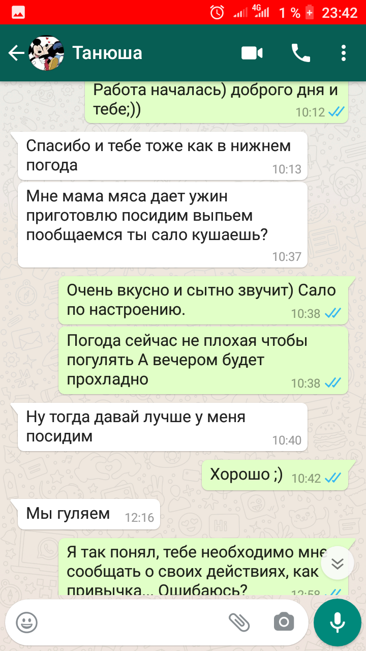 13.08.2020, 17:25 - Танюша: Чем занимаешься?