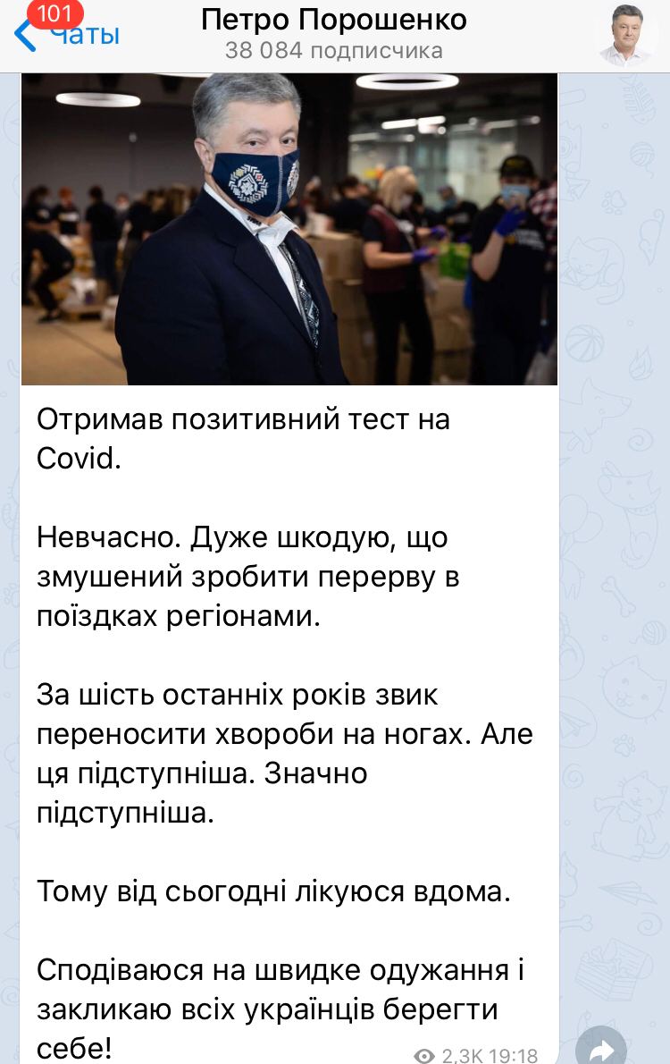 ⚡️У Порошенко положительный результат теста на COVID-19.