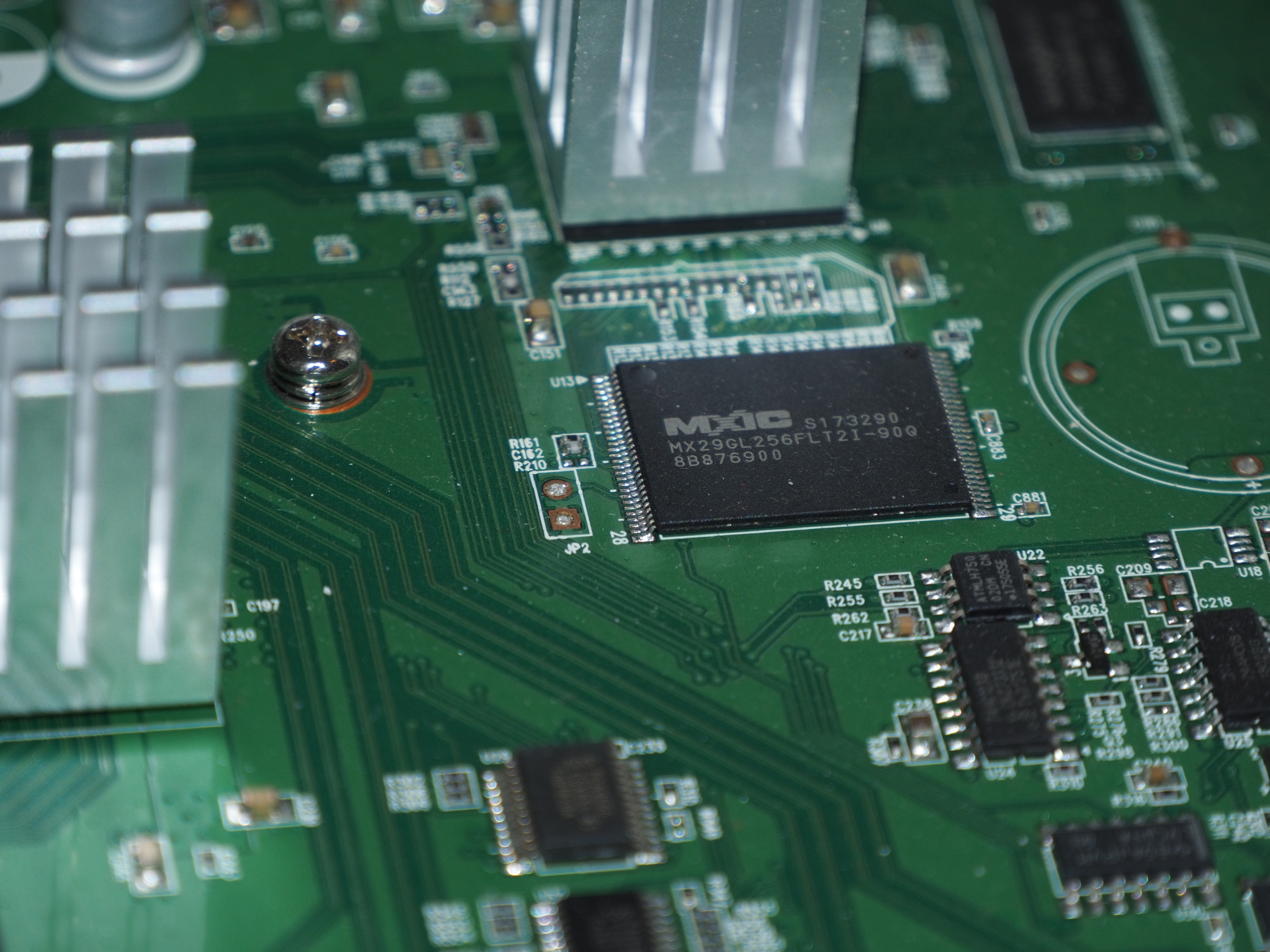 Попался ко мне в руки D-Link DES-3200-28 в ревизии C1. Управляемый, L2. Брался на барахолке по смешной цене. Без инфы по админским аккаунтам. Поскольку чужие конфиги мне нафиг не нужны, не горевал об отсутствии паролей. Думал - резетну, да и настрою под себя... Авотфиг! Как оказалось, в настройках стоял запрет на сброс пароля/конфигурации. В свитчах D-Link есть возможность сбросить пароль на доступ к конфигурации устройства путём входа в спец.режим путём нажатия во время загрузки комбинации клавиш [Shift][6], aka "^" в консольном окне. Но если в конфиге прописан запрет на эту процедуру, всё становится гораздо интереснее. Изучение "этих ваших инторнетов" обогатило меня знаниями о возможности обойти запрет путём заливки новой прошивки устройства через гораздо менее известную комбинацию [Shift][3], aka "#", и нажатии [Shift][6] в нужный волшебный момент сразу после заливки прошивки в свитч. Но не вышло, не фартануло. Способ подходил для ревизий A1, A2. JTAG с внутрисхемным программированием тоже в случае C1 не катит - там Broadcom, который им сейчас не берётся. Углубившись в сетевые нети по наводке DartPhoenix'а, нашёл форум железячников, где есть рабочая прошивка, слитая с живого свитча без паролей. Беда в том, что залить её не так-то просто. Поскольку дамп хранится в MXIC MX29GL256FLT2I-90Q (U13) - NOR FLASH с выводами в корпусе TSOP56, которую абы какой программатор не осилит. Ибо даже в кроватку не засунешь по причине отсутствия таковой. Могут сиё лишь пара-тройка программаторов с ценой сильно за 10 тыр ржублей. Экономически невыгодно. Опять же благодаря направляющим пинкам фени, я таки развинтил свитч - дабы покопаться в его кишочках. И там я увидел рядом с флешкой джампер, обозванный JP2. Точнее, место под его распайку. Одна нога от площадки завлекательно идёт к флешке. При замыкании точек JP2 в момент загрузки, происходит сброс конфигурации свитча. После этого он принимает [Enter] [Enter] вместо имени и пароля. Хочу предостеречь от слишком раннего замыкания. В этом случае свитч не сможет прочитать бутблок, и перейдёт в режим полного восстановления, начиная с базовой части. После её прогрузки, пароль останется на месте. Надо выждать, когда выйдет сообщение о начале загрузки конфигурации в консоли, и потом замыкать. По окончании загрузки дефолтной конфигурации с пустыми паролями, нужно записать чистый вариант в флешку стандартными командами, после чего проблема с доступом будет фактически решена.