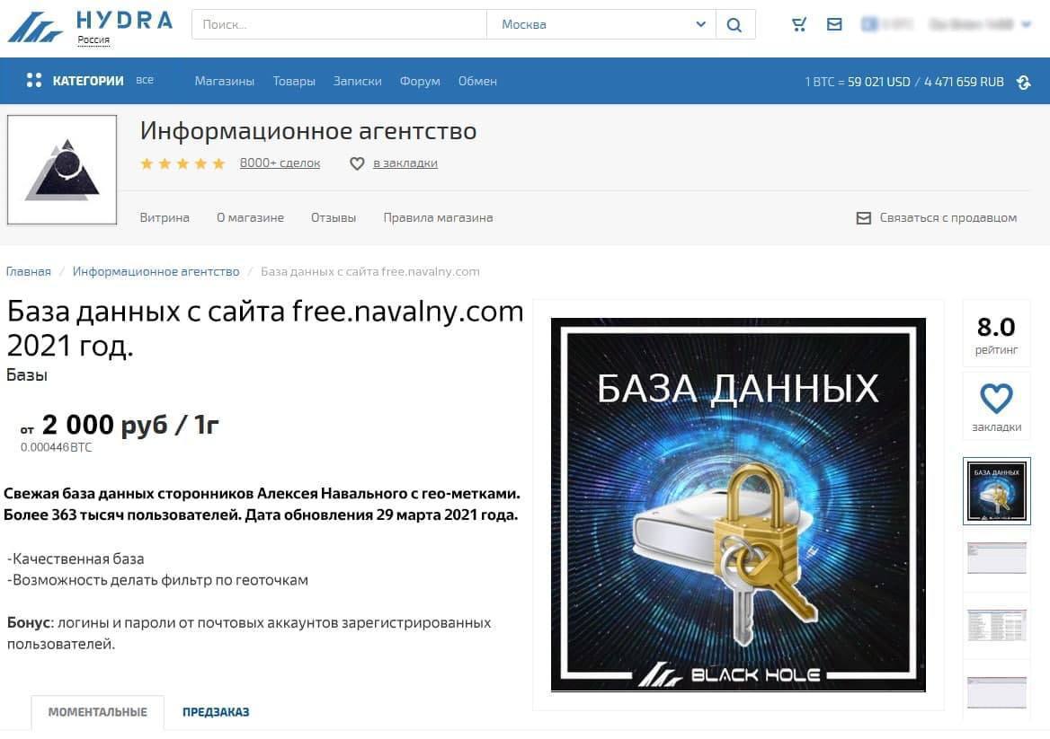 Да это одна из объяв, которые транслируются на малоизвестных теневых форумах. По приложенному к объявлению образцу, в данных содержатся ФИО, даты рождения и адреса. Беглый анализ сайта free.navalny.com показывает, что там не собираются ФИО, даты рождения и адреса - только адреса эл. почты. @user100 - Покупай!