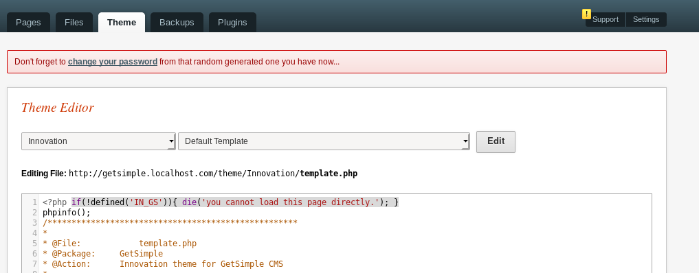В админке имеем возможность редактирования шаблонов - php файлы.