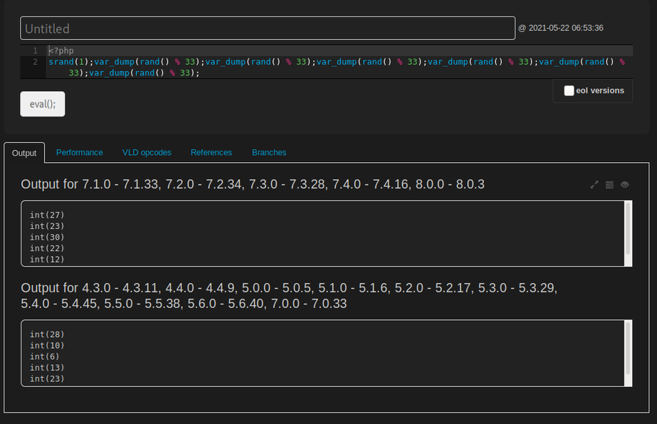 $num rand() % 33;